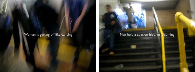 Black coat woman with cap opens a cellurar phone / 110th street sation